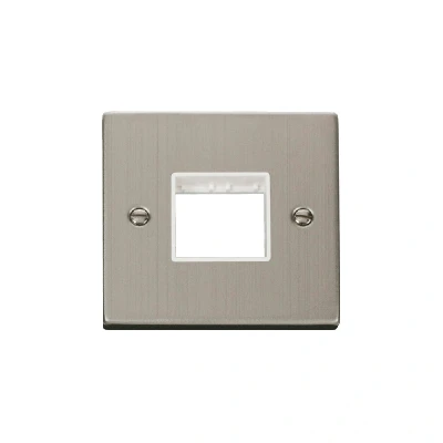 Click Deco 1 Gang MiniGrid Twin Aperture Unfurnished Plate Stainless Steel White Inserts