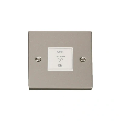 Click Deco 10A 1 Gang 3 Pole Fan Isolation Switch Pearl Nickel Insert White