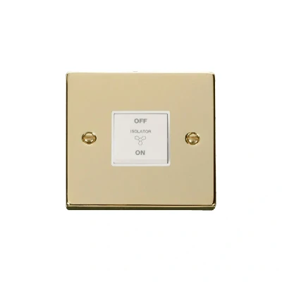Click Deco 10A 1 Gang 3 Pole Fan Isolation Switch Polished Brass Insert White