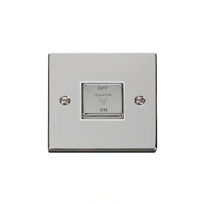 Click Deco 10A 1G 'Ingot' 3P Fan Isolation Switch Polished Chrome Insert White