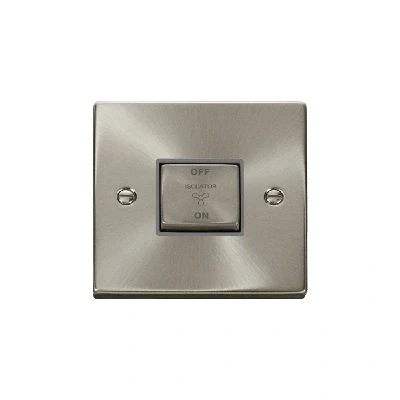 Click Deco 10A 1G 'Ingot' 3P Fan Isolation Switch Satin Chrome Insert Grey