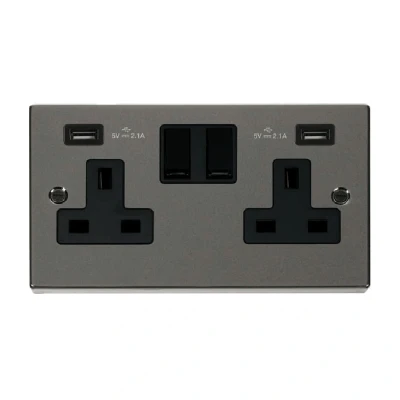 Click Deco 13A 2G Switched Socket with Twin 2.1A USB Outlets Black Nickel Insert Black