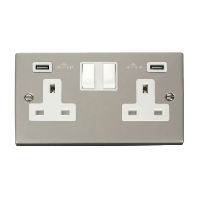 Click Deco 13A 2G Switched Socket with Twin 2.1A USB Outlets Pearl Nickel Insert White