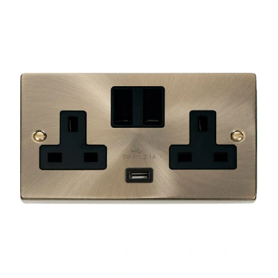 Click Deco 13A 2G Switched Socket with Twin 2.1A USB Outlets Antique...