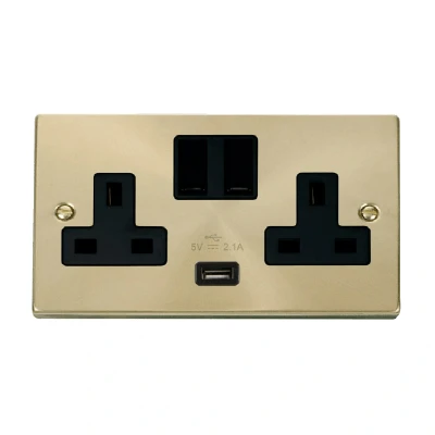 Click Deco 13A 2G Switched Socket With USB Outlet Satin Brass Insert Black