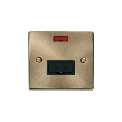 Click Deco 13A Fused Connection Unit With Neon Antique Brass Insert Black
