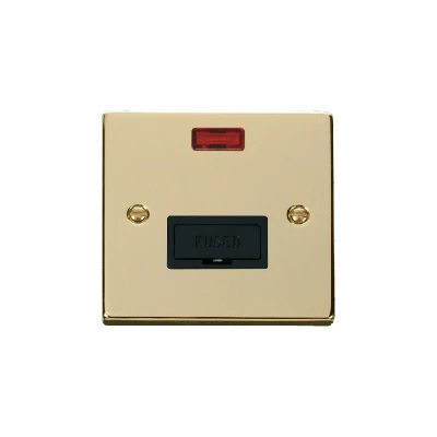 Click Deco 13A Fused Connection Unit With Neon Polished Brass Insert Black
