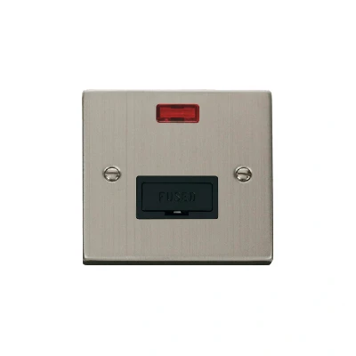 Click Deco 13A Fused Connection Unit With Neon Stainless Steel Insert Black