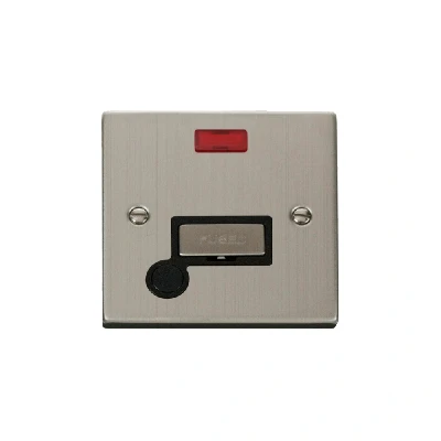 Click Deco 13A Fused 'Ingot' Connection Unit With Flex Outlet & Neon Stainless Steel Insert Black