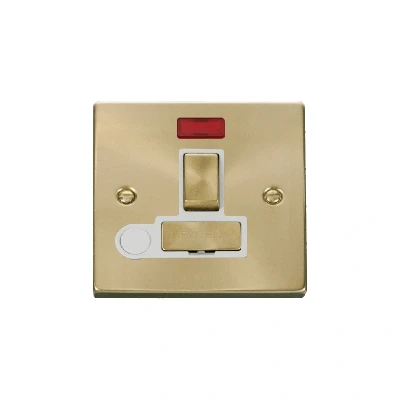 Click Deco 13A Fused 'Ingot' DP Switched Connection Unit With Flex Outlet & Neon Satin Brass Insert White