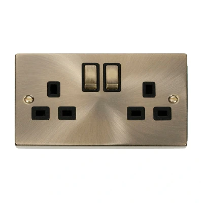 Click Deco 2 Gang 13A DP 'Ingot' Switched Socket Outlet (Twin Earth) Antique Brass Insert Black