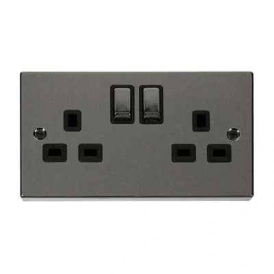 Click Deco 2 Gang 13A DP Switched Socket Outlet (Twin Earth) Black Nickel Insert