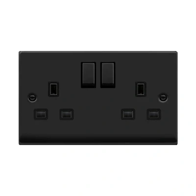 Click Deco 2 Gang 13A DP 'Ingot' Switched Socket Outlet (Twin Earth) Matt Black Insert Black