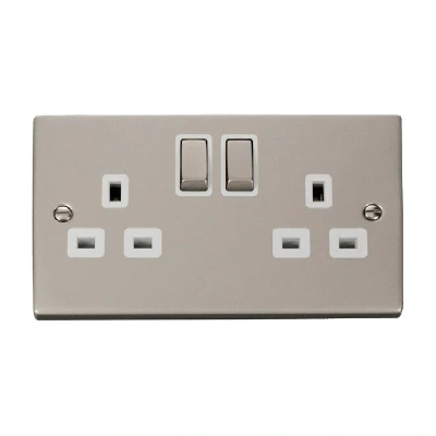 Click Deco 2 Gang 13A DP 'Ingot' Switched Socket Outlet (Twin Earth) Pearl Nickel Insert White