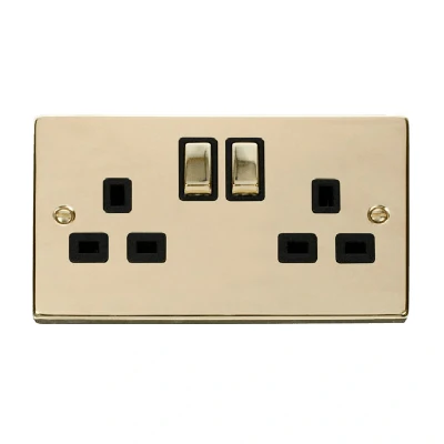 Click Deco 2 Gang 13A DP 'Ingot' Switched Socket Outlet (Twin Earth) Polished Brass Insert Black