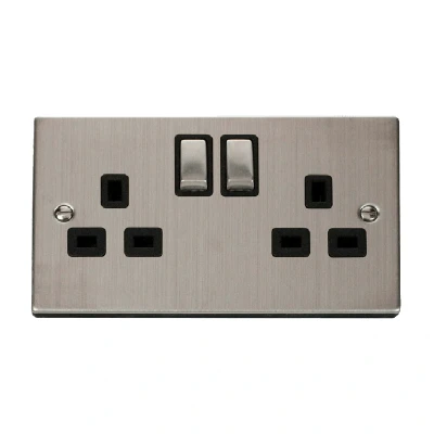 Click Deco 2 Gang 13A DP 'Ingot' Switched Socket Outlet (Twin Earth) Stainless Steel Insert Black
