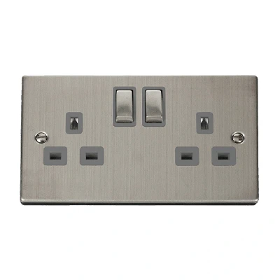 Click Deco 2 Gang 13A DP 'Ingot' Switched Socket Outlet (Twin Earth) Stainless Steel Insert Grey