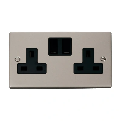 Click Deco 2 Gang 13A DP Switched Socket Outlet (Twin Earth) Pearl Nickel Insert Black