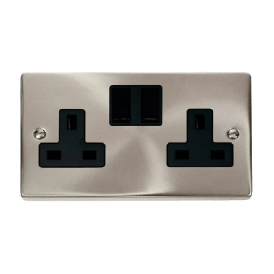 Click Deco 2 Gang 13A DP Switched Socket Outlet (Twin Earth) Satin Chrome Insert Black