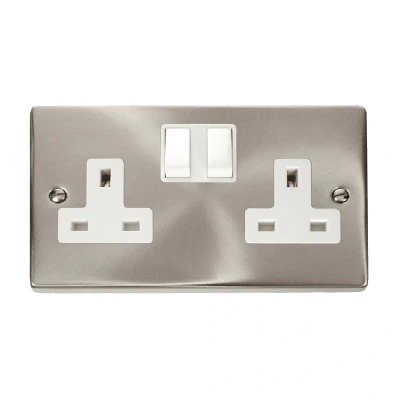 Click Deco 2 Gang 13A DP Switched Socket Outlet (Twin Earth) Satin Chrome Insert White