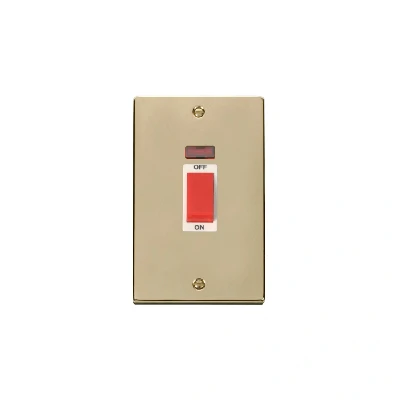 Click Deco 2 Gang 45A DP Switch with Neon Polished Brass Insert White