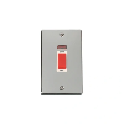 Click Deco 2 Gang 45A DP Switch with Neon Polished Chrome Insert White