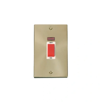 Click Deco 2 Gang 45A DP Switch with Neon Satin Brass Insert White