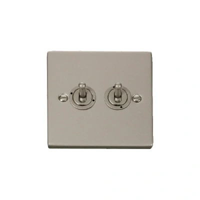 Click Deco 2 Gang 2 Way 10AX Toggle Switch Pearl Nickel