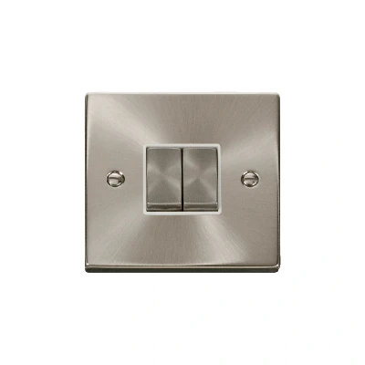 Click Deco 2 Gang 2 Way Ingot 10AX Switch Satin Chrome White Inserts