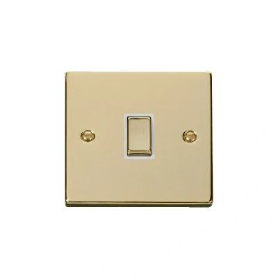Click Deco 20A 1 Gang Double Pole 'Ingot' Switch Polished Brass Insert White