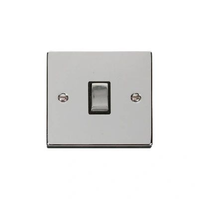 Click Deco 20A 1 Gang Double Pole 'Ingot' Switch Polished Chrome Insert Black