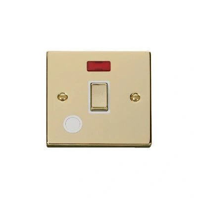 Click Deco 20A 1 Gang DP 'Ingot' Switch With Flex Outlet and Neon Polished Brass Insert White