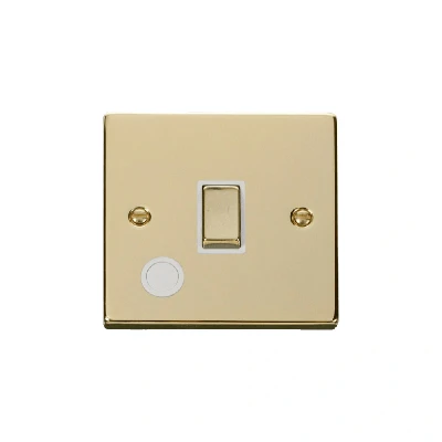 Click Deco 20A 1 Gang DP 'Ingot' Switch With Flex Outlet Polished Brass Insert White
