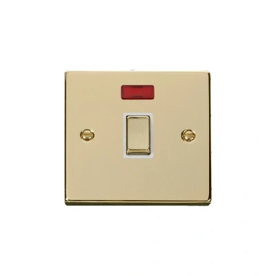 Click Deco 20A 1 Gang DP 'Ingot' Switch with Neon Polished Brass Insert White
