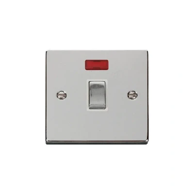 Click Deco 20A 1 Gang DP 'Ingot' Switch with Neon Polished Chrome Insert White
