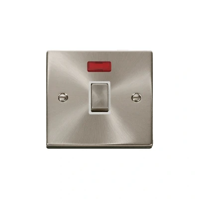 Click Deco 20A 1 Gang DP 'Ingot' Switch with Neon Satin Chrome Insert White