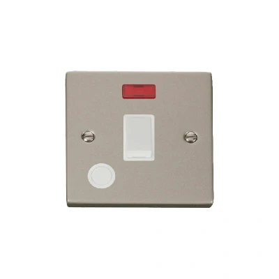 Click Deco 20A 1 Gang DP Switch with Flex Outlet and Neon Pearl Nickel Insert White