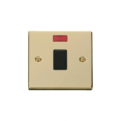 Click Deco 20A 1 Gang DP Switch Polished Brass Insert Black