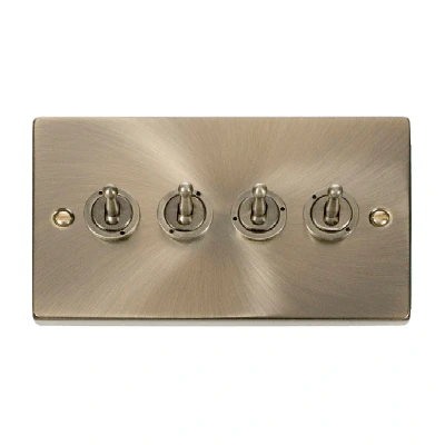 Click Deco 4 Gang 2 Way 10AX Toggle Switch Antique Brass
