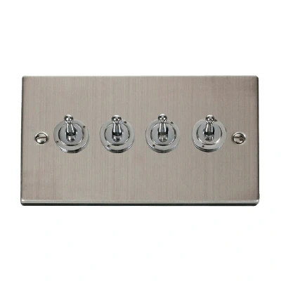 Click Deco 4 Gang 2 Way 10AX Toggle Switch Stainless Steel