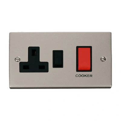 Click Deco 45A DP Switch 13A Switched Socket Pearl Nickel Insert Black