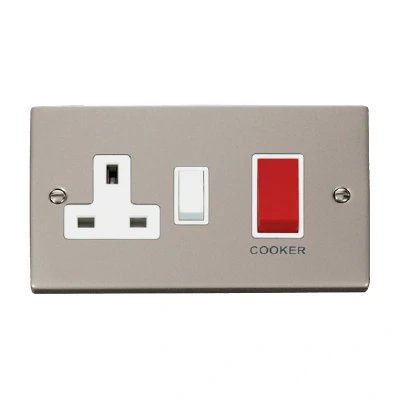 Click Deco 45A Ingot DP Switch with 13A Switched Socket Pearl Nickel Insert White