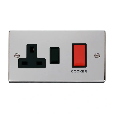 Click Deco 45A Ingot DP Switch with 13A Switched Socket Polished Chrome Insert Black