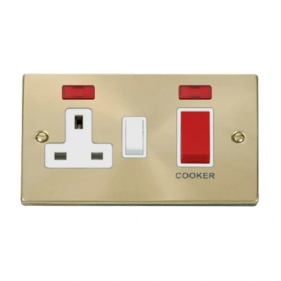 Click Deco 45A DP Switch with 13A Switched Socket and Neons Satin Brass Insert White