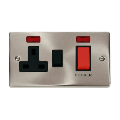 Click Deco 45A DP Switch with 13A Switched Socket and Neons Satin Chrome Insert Black