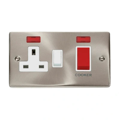 Click Deco 45A DP Switch with 13A Switched Socket and Neons Satin Chrome Insert White