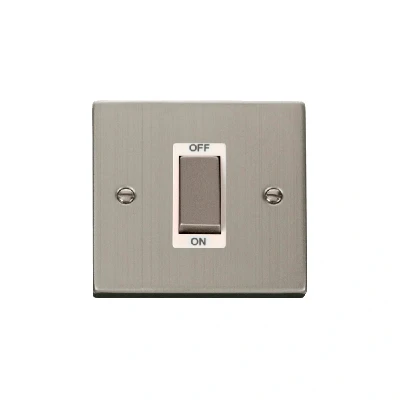 Click Deco 45A Ingot 1 Gang DP Switch Stainless Steel Insert White