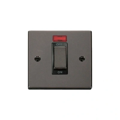 Click Deco 45A Ingot 1 Gang DP Switch With Neon Pearl Nickel Insert Black