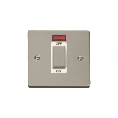 Click Deco 45A Ingot 1 Gang DP Switch With Neon Pearl Nickel Insert White