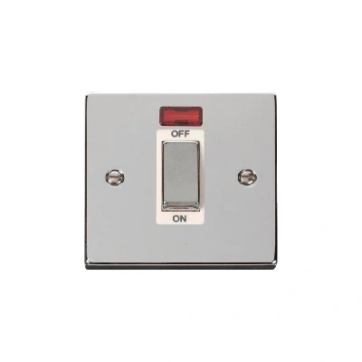 Click Deco 45A Ingot 1 Gang DP Switch With Neon Polished Chrome Insert White